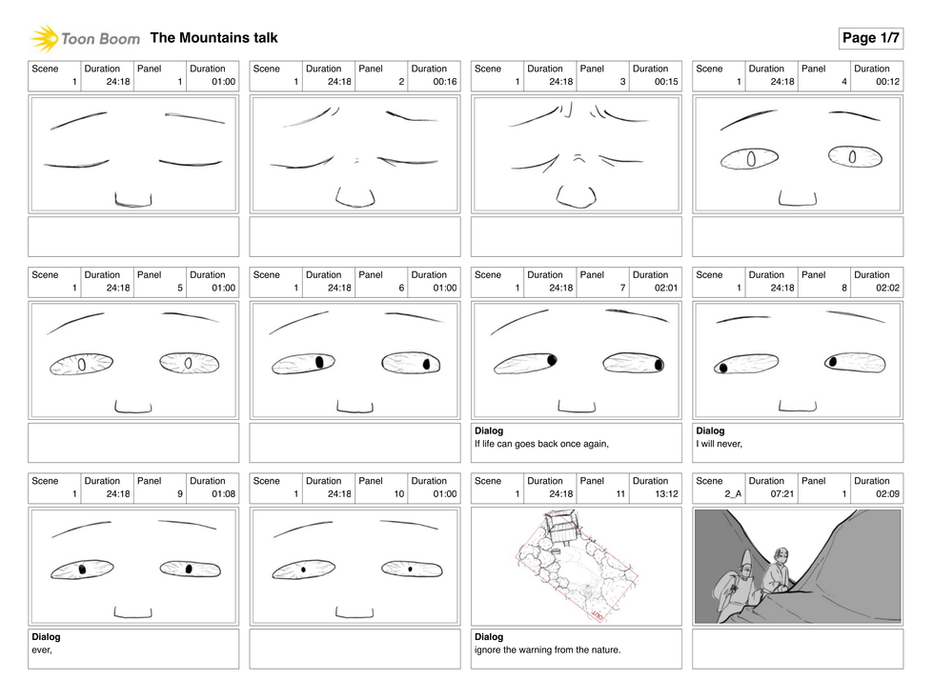 Click on each first drawing to enlarge it and easily swipe through the story.